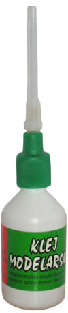 Klej modelarski z igłą. Szybkoschnący klej modelarski przeznaczony do sklejania modeli z polistyrenu. Jednak można także używać go do sklejania innych przedmiotów z tego tworzywa. Działa rozpuszczając wierzchnią warstwę materiału w klejonych częściach i po ściśnięciu , rozmiękczone tworzywo łączy części. Nie należy zbyt mocno smarować klejem. Wystarczy delikatnie posmarować klejone elementy i po chwili złożyć.